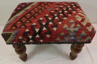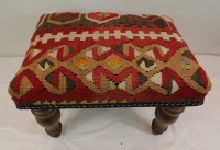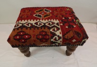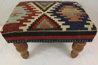 Kilim Ottomans can be made to order according to the requirement of the client. They can choose the rugs from the hundreds of varieties with which to upholster the stools. As each piece of kilim is unique both in the sense of colour combinations and the designs woven into it, you can rest assured that the Kilim Footstools would be a prized possession among your Kilim Tables lending elegance and style.