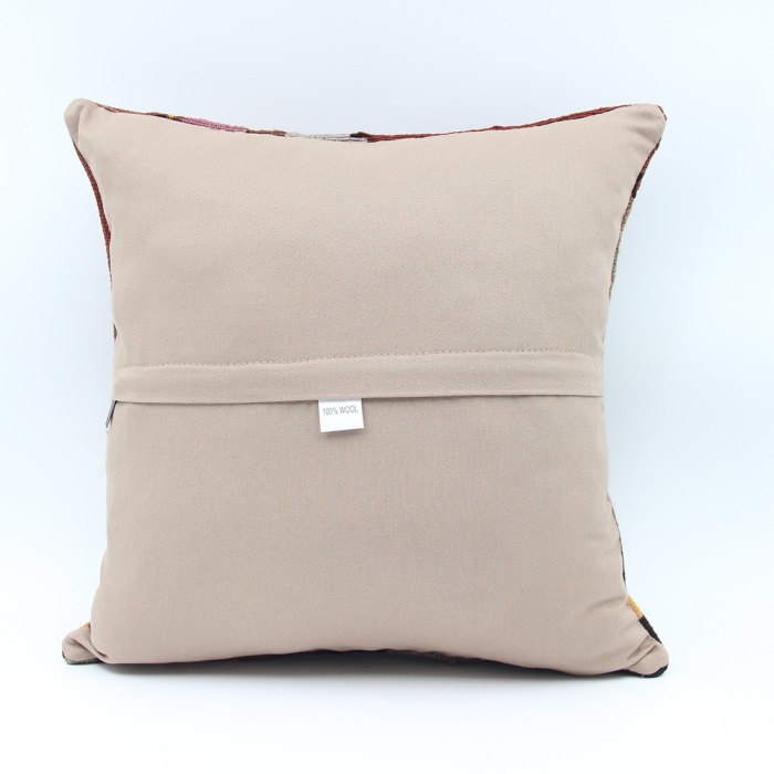 Kilims used in our products are old and genuine. These Kilim Cushions are made with pieces of carpets and kilims joined to make Kilim Cushion Covers. Kilim Pillows can be made for order for any size. Back has cotton with a zipper