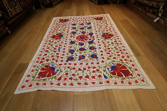 We are happy to bring you the latest and modern Uzbek suzanis at competitive prices. Our suzanis are genuine folk art, stitched by hand in the ancient traditional motif.