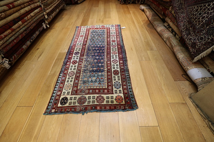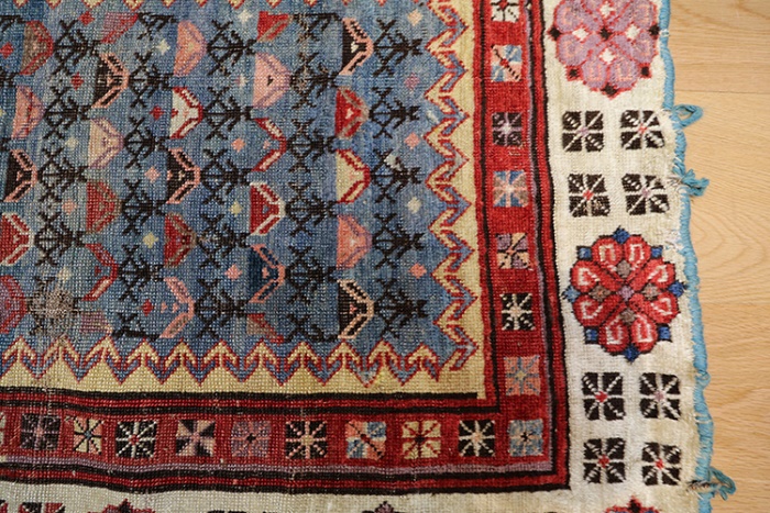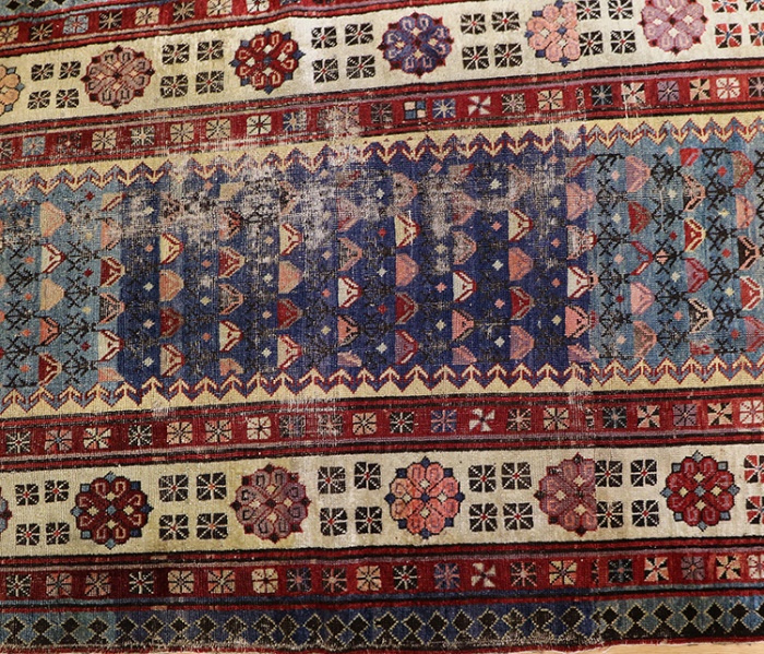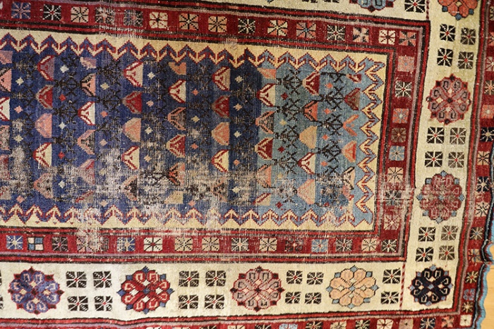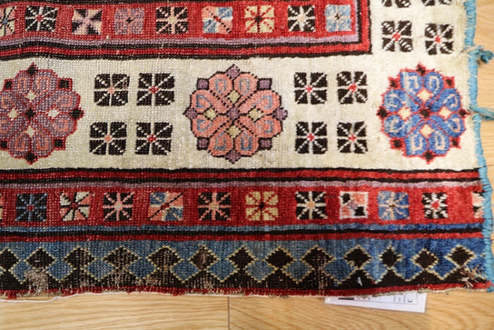 This rug is over hundred years old and some minor damage and cut in Centre