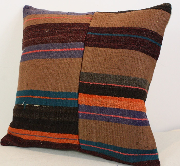 Kilims used in our products are old and genuine. These Kilim Cushions are made with pieces of carpets and kilims joined to make Kilim Cushion Covers. Kilim Pillow Covers can be made for order for any size. Back has cotton with a zipper.