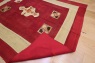 The weavings are cut into squares and other basic geometric forms and assembled in a pattern, backed with two layers of fabric to reinforce, sewn together and ironed.