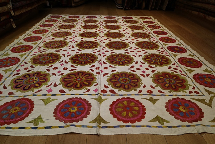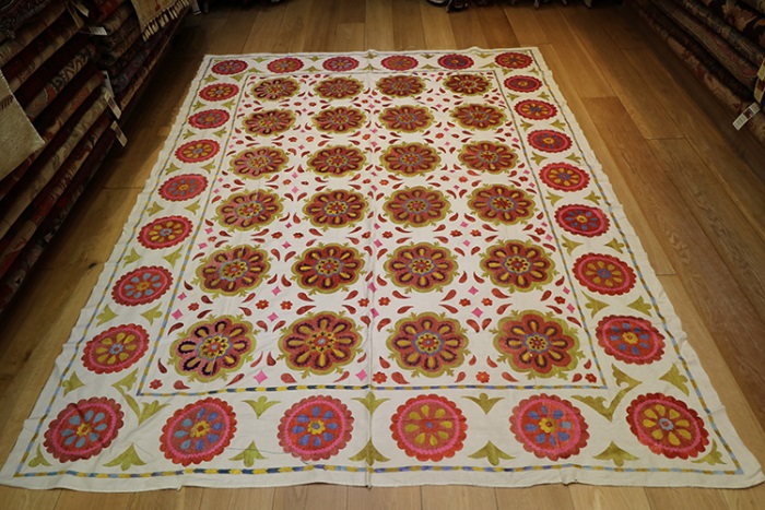 We are happy to bring you the latest and modern Uzbek suzanis at competitive prices. Our suzanis are genuine folk art, stitched by hand in the ancient traditional motif.