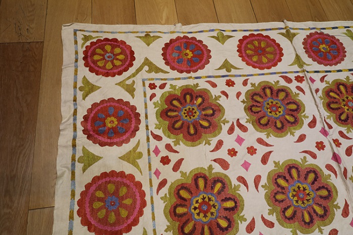 You can use them as a cover for the bed and they can bring colour and texture to any environment. Suzani make delightful wall hangings, bedspreads, furniture throws, pillows, and even tablecloths.