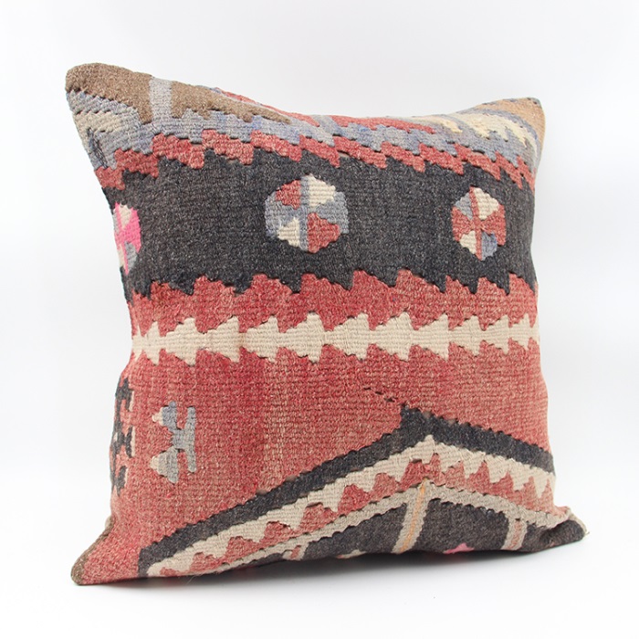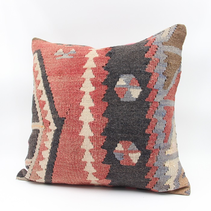 Kilims used in our products are old and genuine. These Kilim Cushions are made with pieces of carpets and kilims joined to make Kilim Cushion Covers. Kilim Pillow Covers can be made for order for any size. Back has cotton with a zipper.