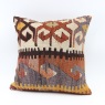 Kilims used in our products are old and genuine. These Kilim Cushions are made with pieces of carpets and kilims joined to make Kilim Pillow Covers. Kilim Cushion Covers can be made for order for any size. Back has cotton with a zipper.