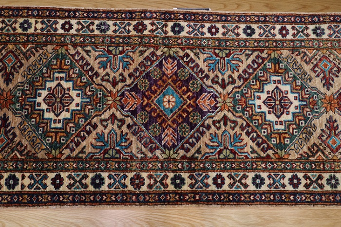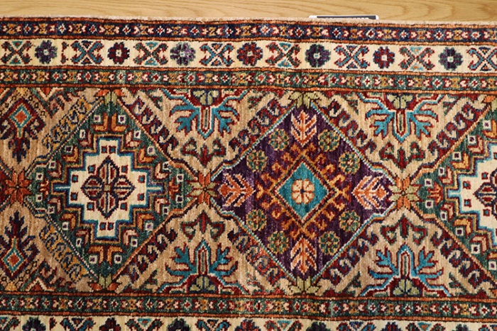 We try to adjust the photos as accurately as possible however colours in rugs may vary due to differences in monitor settings.