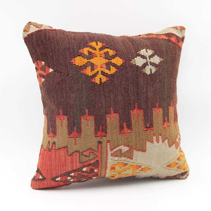 Kilims used in our products are old and genuine. These Kilim Cushions are made with pieces of carpets and kilims joined to make Kilim Cushion Covers. Kilim Pillows can be made for order for any size. Back has cotton with a zipper.