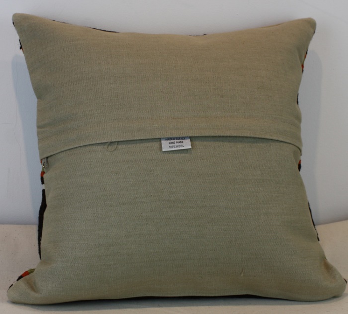 Kilims used in our products are old and genuine. These Kilim Cushions are made with pieces of carpets and kilims joined to make Kilim Cushion Covers. Kilim Pillows can be made for order for any size. Back has cotton with a zipper.