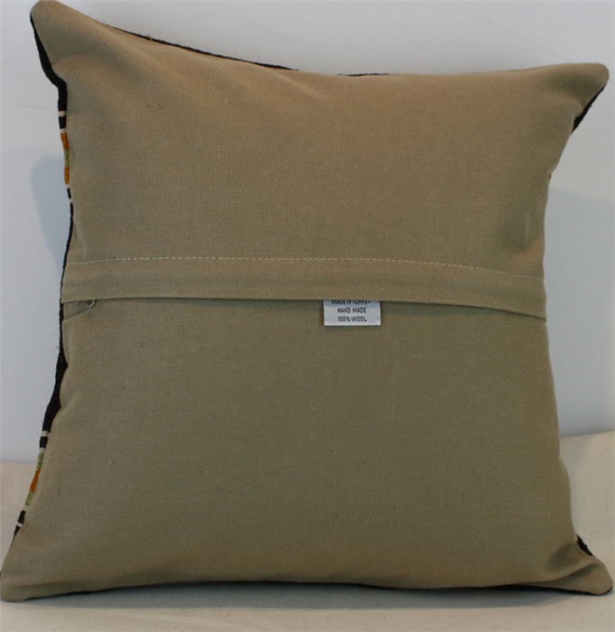 Kilims used in our products are old and genuine. These Kilim Cushions are made with pieces of carpets and kilims joined to make Kilim Cushion Covers. Kilim Pillow Covers can be made for order for any size. Back has cotton with a zipper.