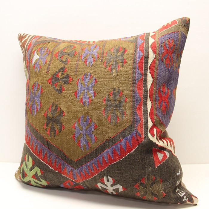 Kilim Rugs used in our products are old and genuine. These Kilim Cushions are made with pieces of carpets and kilims joined to make Kilim Cushion Covers. Kilim Cushion Covers can be made for order for any size. Back has cotton with a zipper.