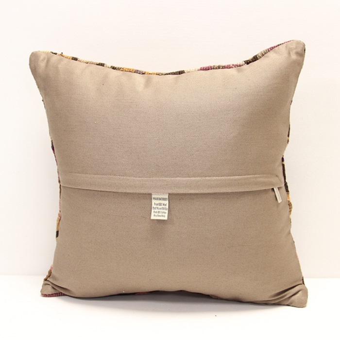 Kilims used in our products are old and genuine. These Kilim Cushions are made with pieces of carpets and kilims joined to make Kilim Cushion Covers. Kilim Pillows can be made for order for any size. Back has cotton with a zipper.