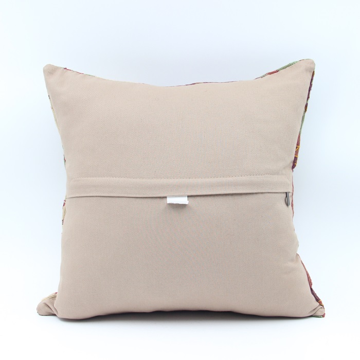Kilims used in our products are old and genuine. These Kilim Cushions are made with pieces of carpets and kilims joined to make Kilim Cushion Covers. Kilim Pillows can be made for order for any size. Back has cotton with a zipper