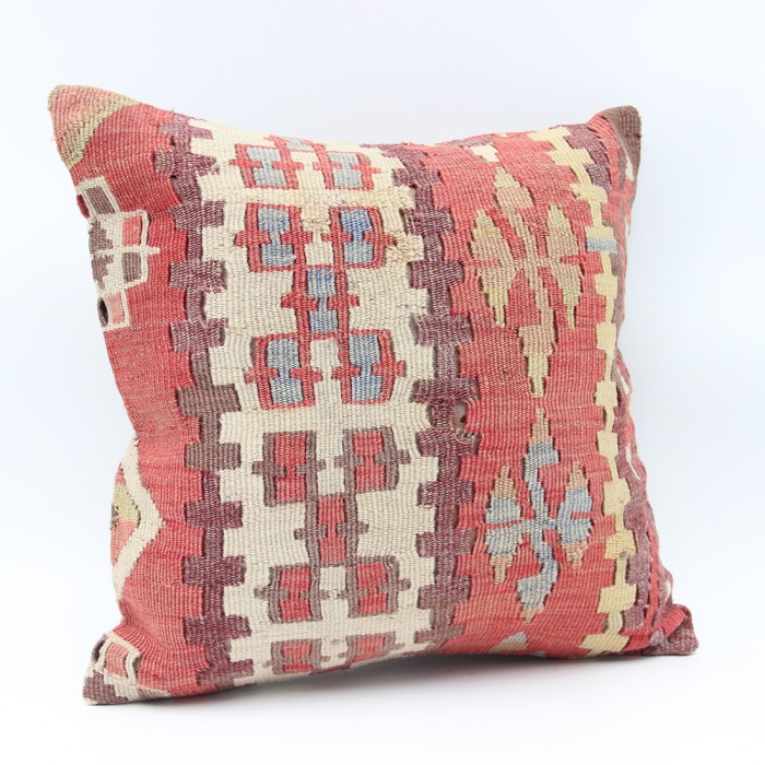 Kilims used in our products are old and genuine. These Kilim Cushions are made with pieces of carpets and kilims joined to make Kilim Cushion Covers. Kilim Pillows can be made for order for any size. Back has cotton with a zipper.