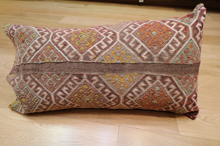Kilims used in our products are old and genuine. These Kilim Cushions are made with pieces of carpets and kilims joined to make Kilim Cushion Covers. Kilim Pillows can be made for order for any size. Back has cotton with a zipper.