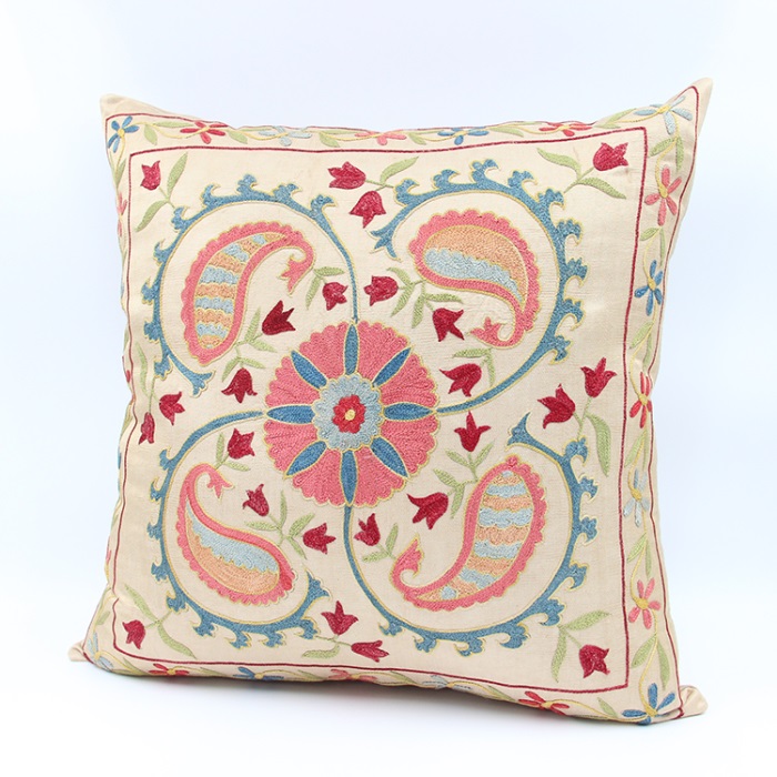 Silk Suzani Cushion Cover made from Uzbek hand embroidery Silk on Silk Suzani, View one of the most Suzani Cushion Pillows with largest selection of Suzani Rugs at Rug Store online for UK and worldwide delivery.