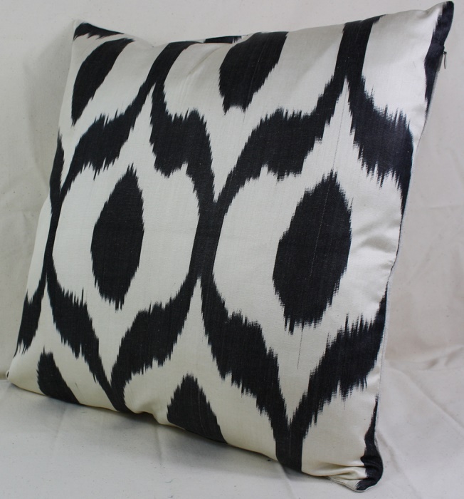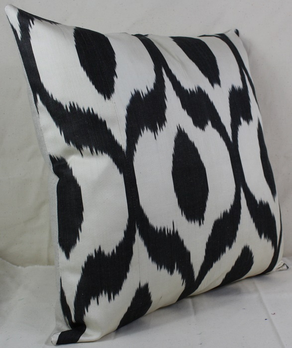 This pillow made from Hand loomed Silk Uzbekistan Ikat fabric. Hand woven Designer ikat throw pillow cover to decorate your luxurious penthouse apartment, infuse so sweet, quite, sooth sleep after hard working day. It can brighten up any old sofa or armchair. Back side is cotton fabric with hidden zipper.