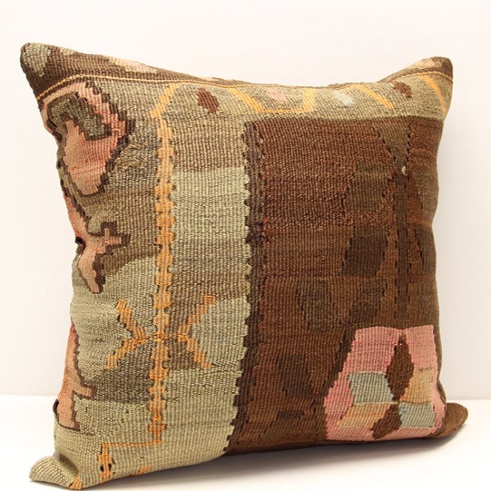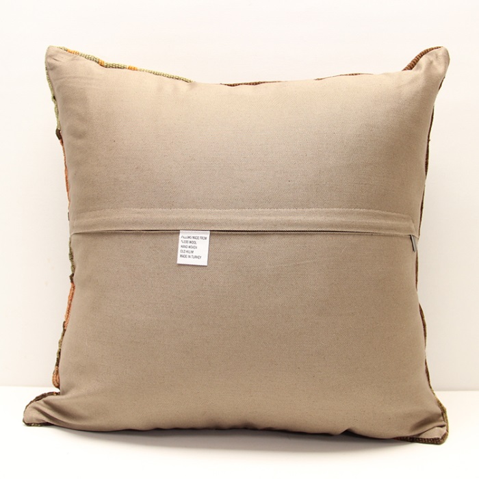 Kilims used in our products are old and genuine. These Kilim Cushions are made with pieces of carpets and kilims joined to make Kilim Cushion Covers. Kilim Cushion Covers can be made for order for any size. Back has cotton with a zipper.