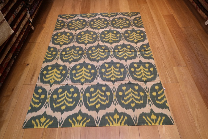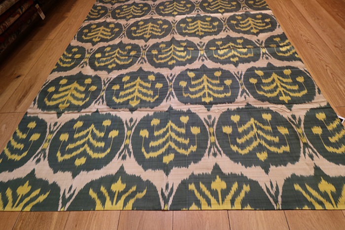 Hand woven silk Ikat Textiles, this silk Ikat is absolutely beautiful and unique Uzbekistan silk Ikat. This can be used on beds, sofas and tables. They also make a beautiful wall hanging decoration your luxurious penthouse apartment, with the largest selection of Silk Ikats at Rug Store online for UK and worldwide delivery.